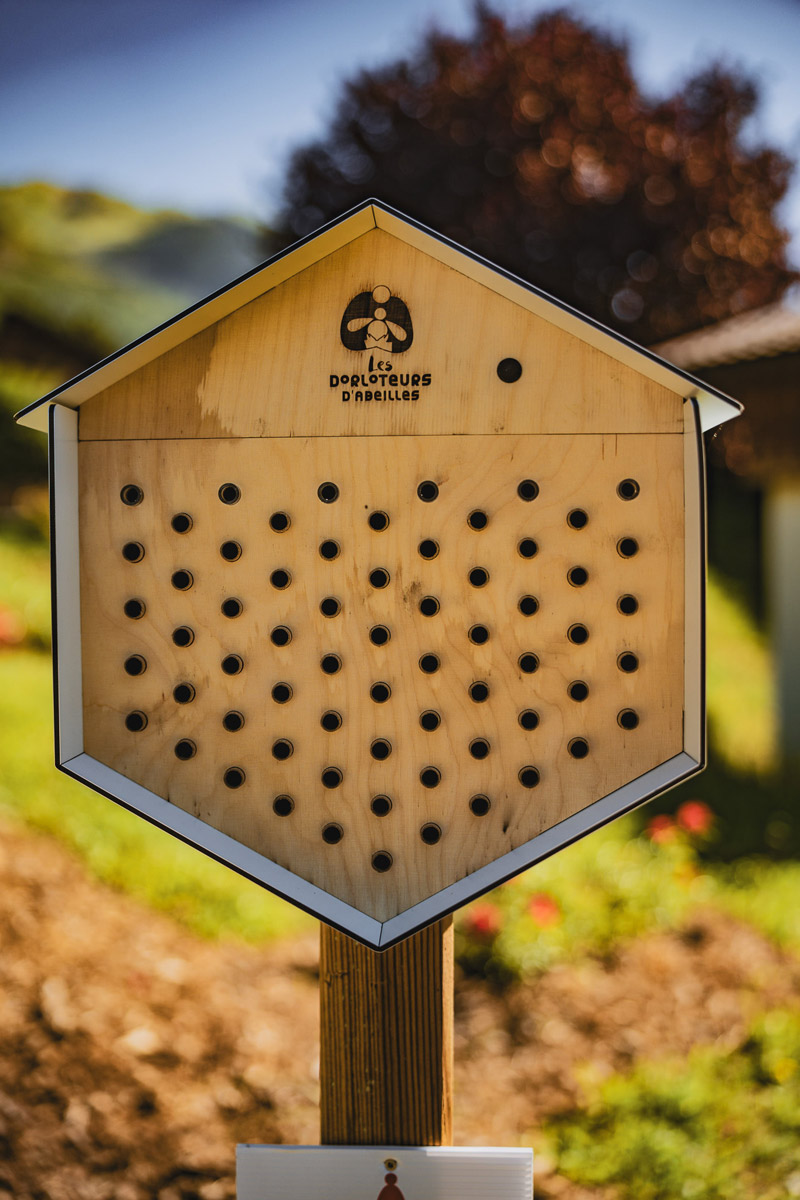 Cet espace, est également agrémenté d’un « dorlotoir » d’abeilles, une petite maison capable d’accueillir les abeilles sauvages afin de favoriser leur reproduction »