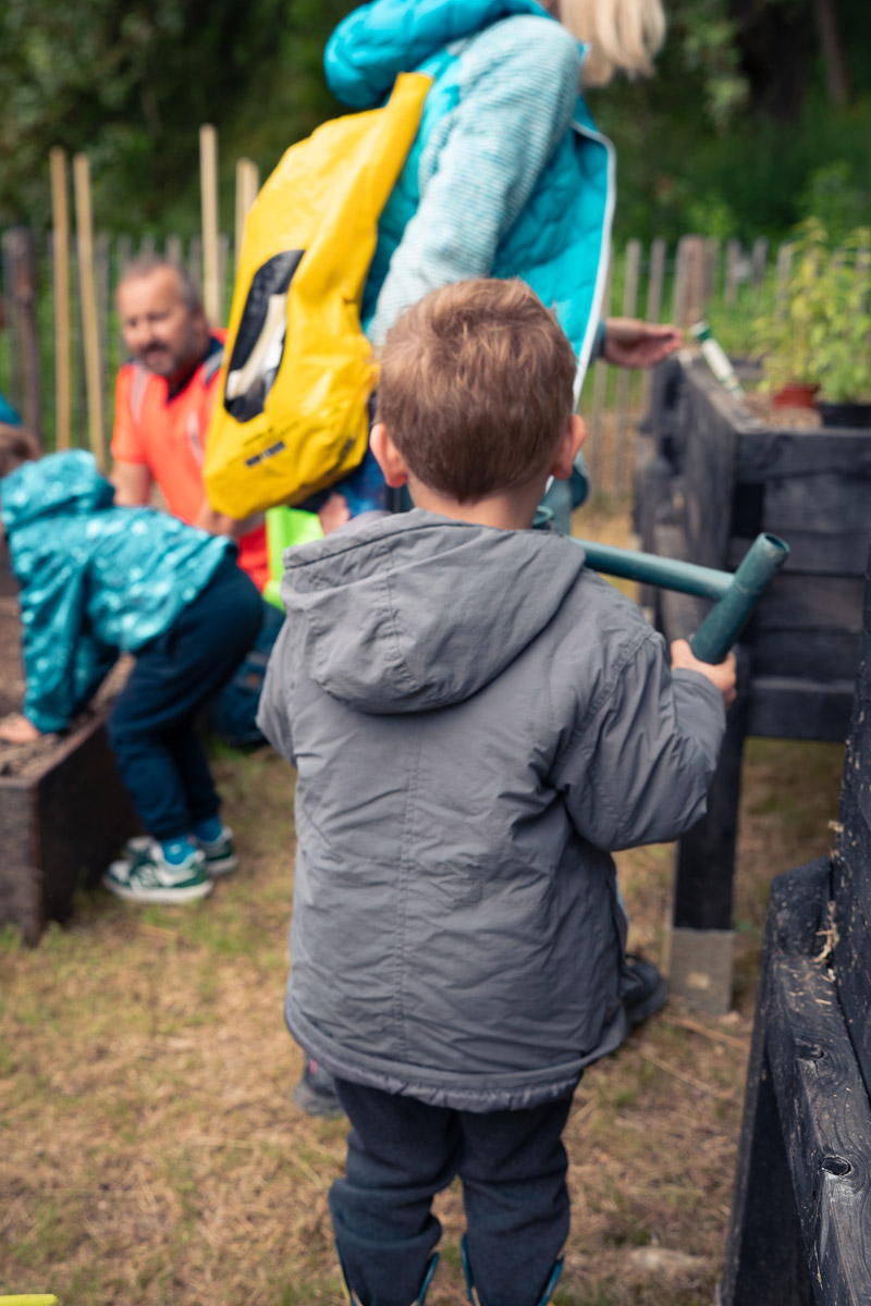 Puis, au printemps 2023, les équipes ont joint leurs efforts pour ériger un jardin potager, pour profiler les chemins d’accès au site et finaliser une grande partie des plantations avec de nombreux arbres fruitiers.