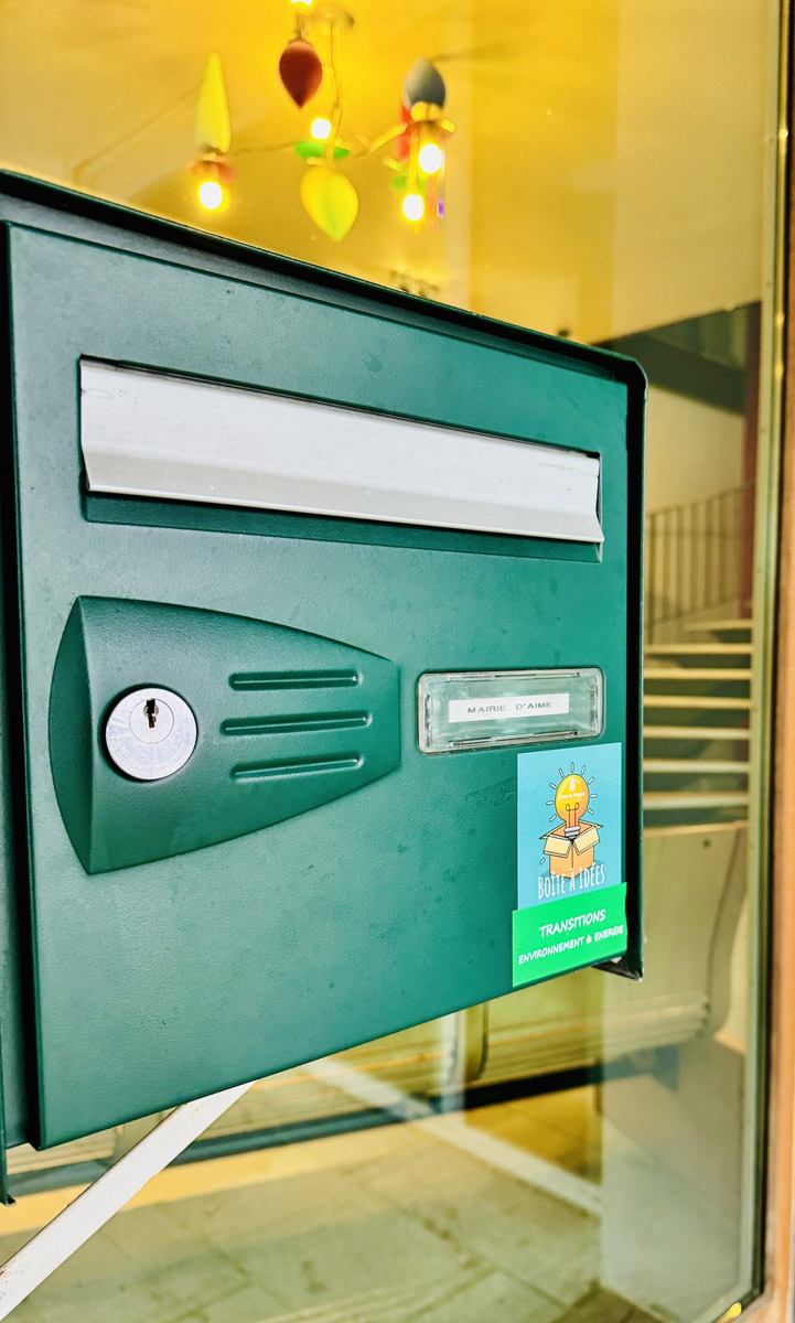 Vous pouvez inscrire votre idée et la déposer dans les boîtes aux lettres matérialisées par l’autocollant « boîte à idées ».