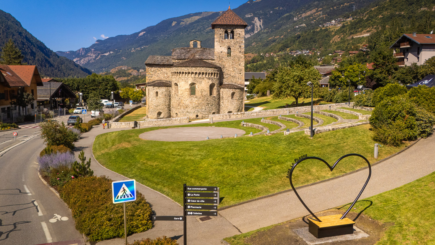 Bourg- centre de la commune, Aime occupe cette position centrale du territoire communal depuis des millénaires.