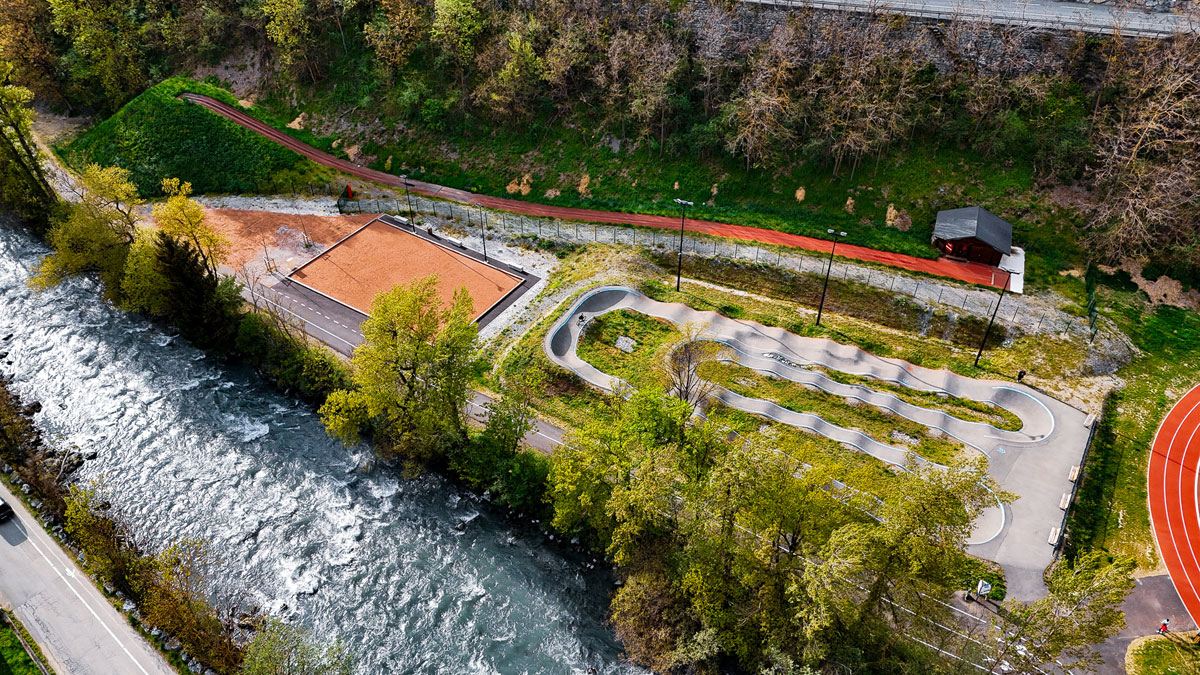 Partie intégrante de l’espace sportif Albert Perrot, la pumptrack vous propose sur une surface de 1200m², 200m de piste où vous pourrez pratiquer, le vélo, le BMX, le roller et trottinettes.